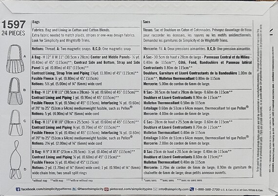 2013 Simplicity Hand Bags Sewing Pattern 1597 4 Designs Etsy Uk